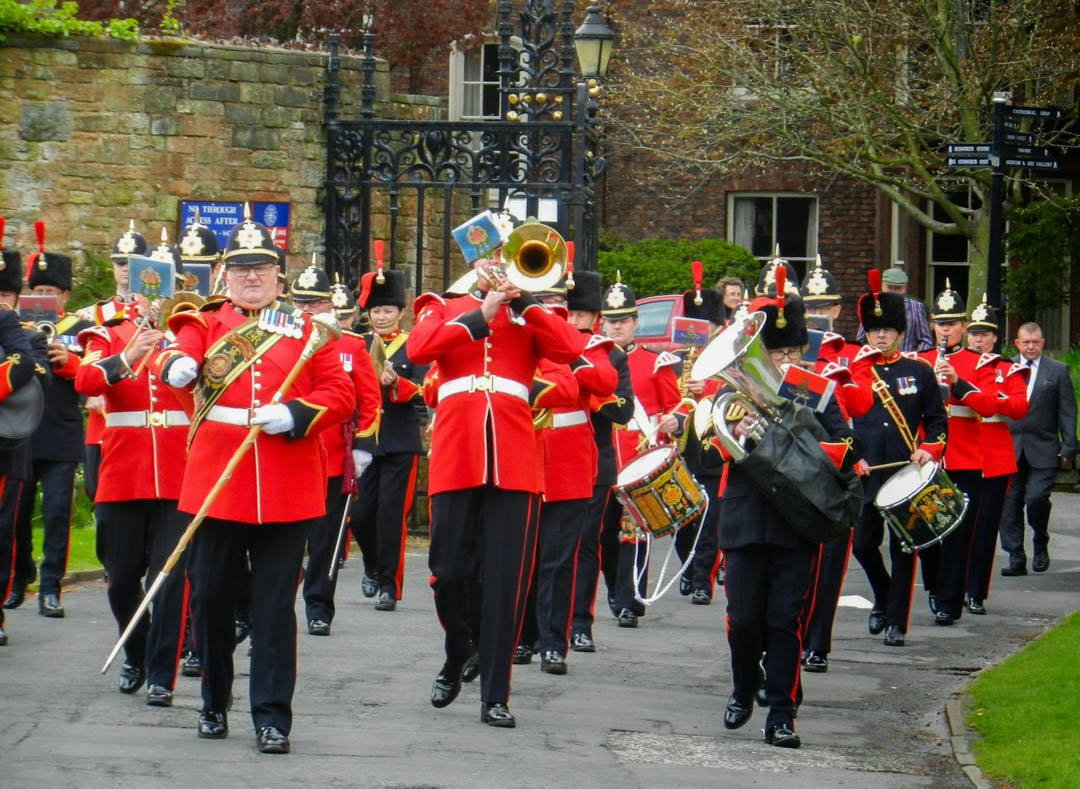 After our run around the house at Acorn we headed west to the city of Carlisle, one of the traditional border towns with Scotland. Carlisle has an imposing fortified castle that originally served as a protection against the Scots and later housed the Carlisle Border Guard Regiment. Carlisle is also home to a Cathedral which today was hosting the Anniversary Memorial service for the Regiment.